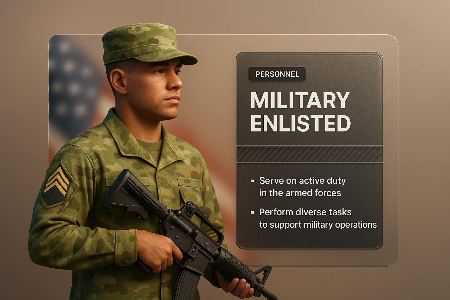 3D Military Enlisted Character with Integrated Design Elements