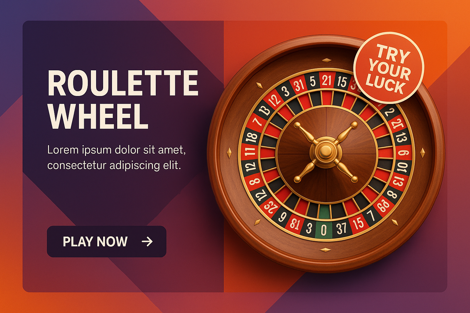 /Collection: /by davooda/Type: PNG/An eye-catching design showcasing a roulette wheel with vibrant geometric shapes in the background. The wheel features numbers and colors, with a prominent call-to-action button.