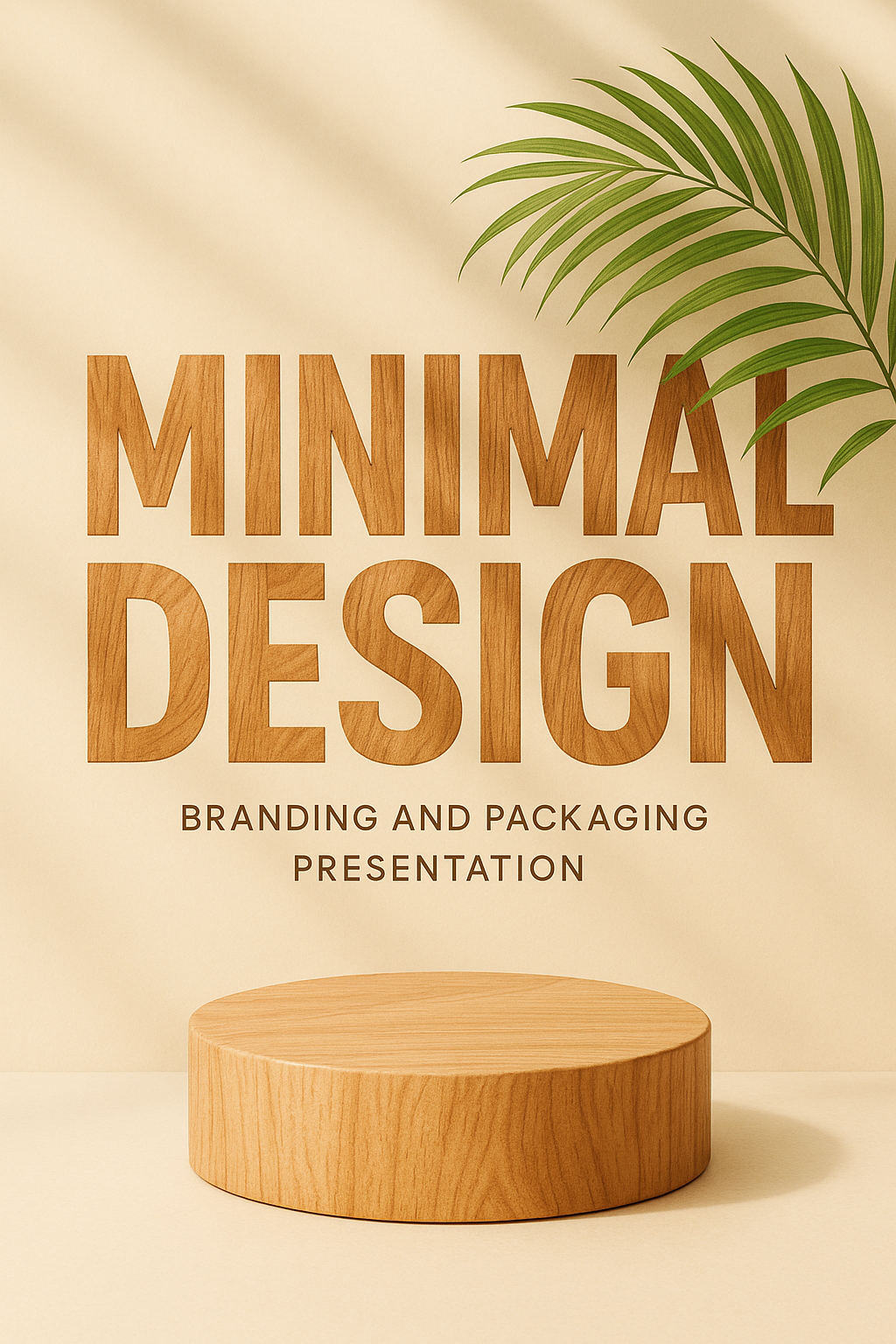 Stylish minimal design presentation graphic featuring wooden typography and a circular platform, ideal for showcasing branding and packaging concepts.