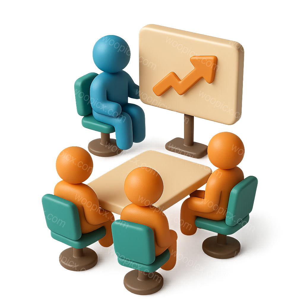 Stylized 3D Board Meeting Icon with Figures and Chart
