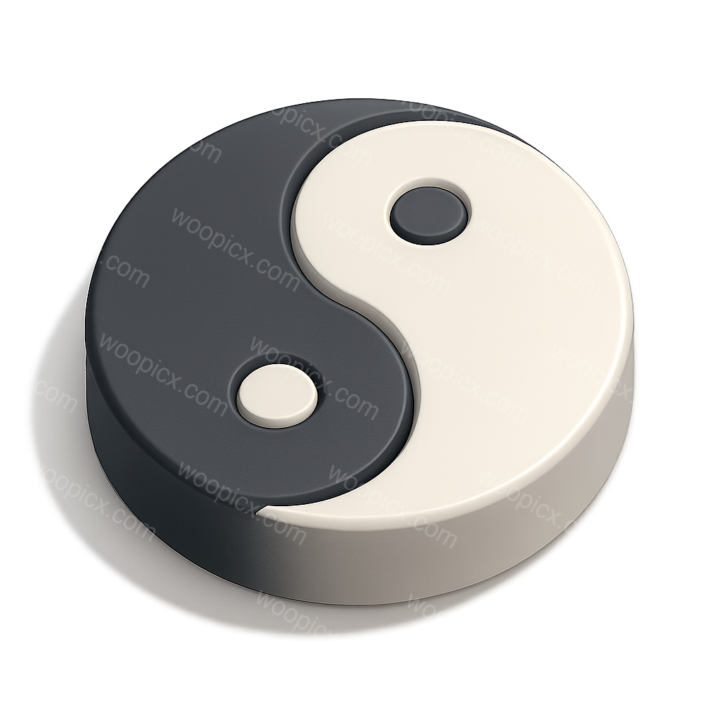 3D Yin Yang Icon with Volumetric Depth and Isometric View