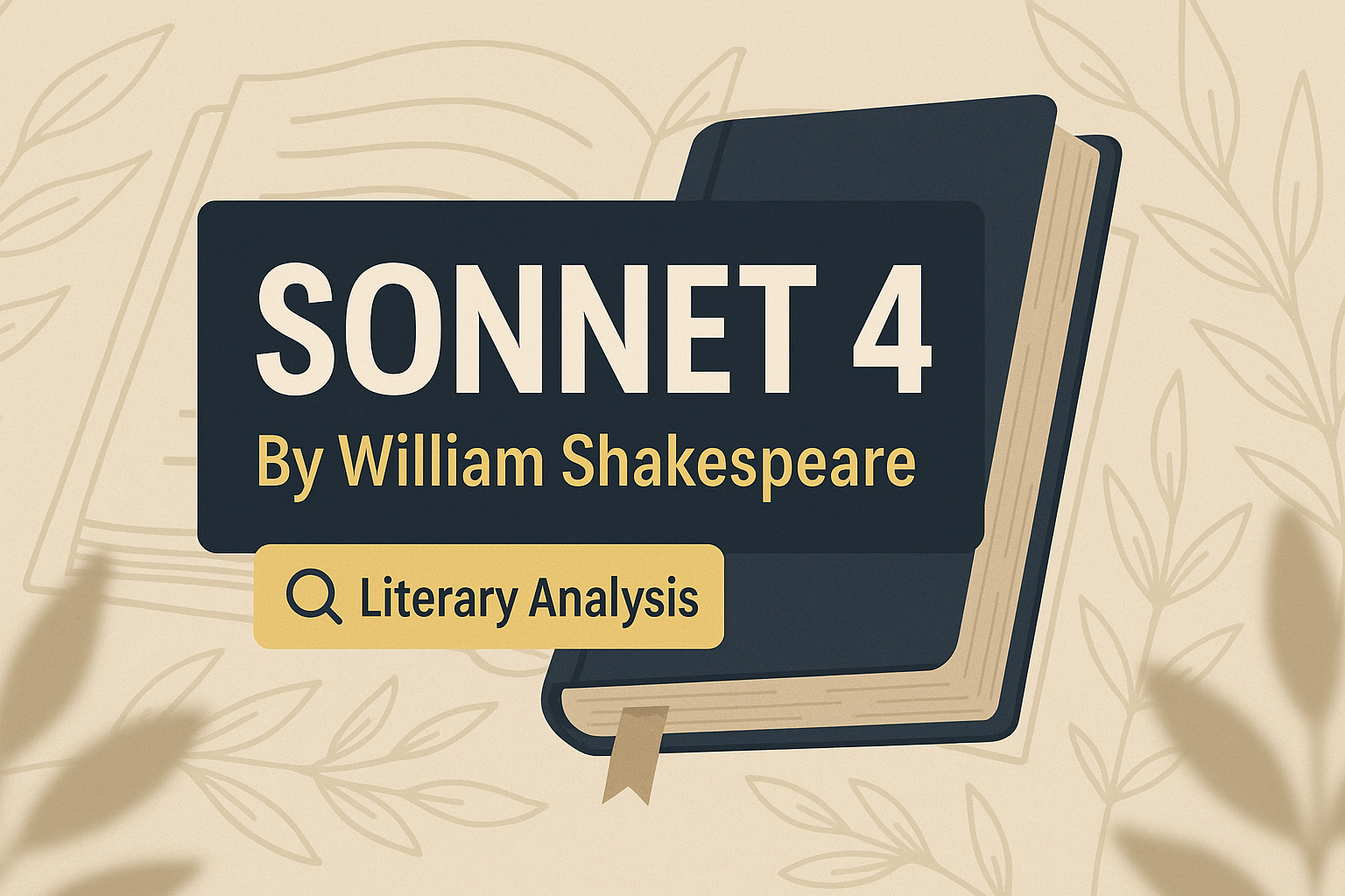 /Collection: /by davooda/Type: PNG/A visually appealing graphic featuring Shakespeare's Sonnet 4, designed for educational purposes. It combines elegant typography with a soft color palette and book imagery, ideal for literary analysis content.