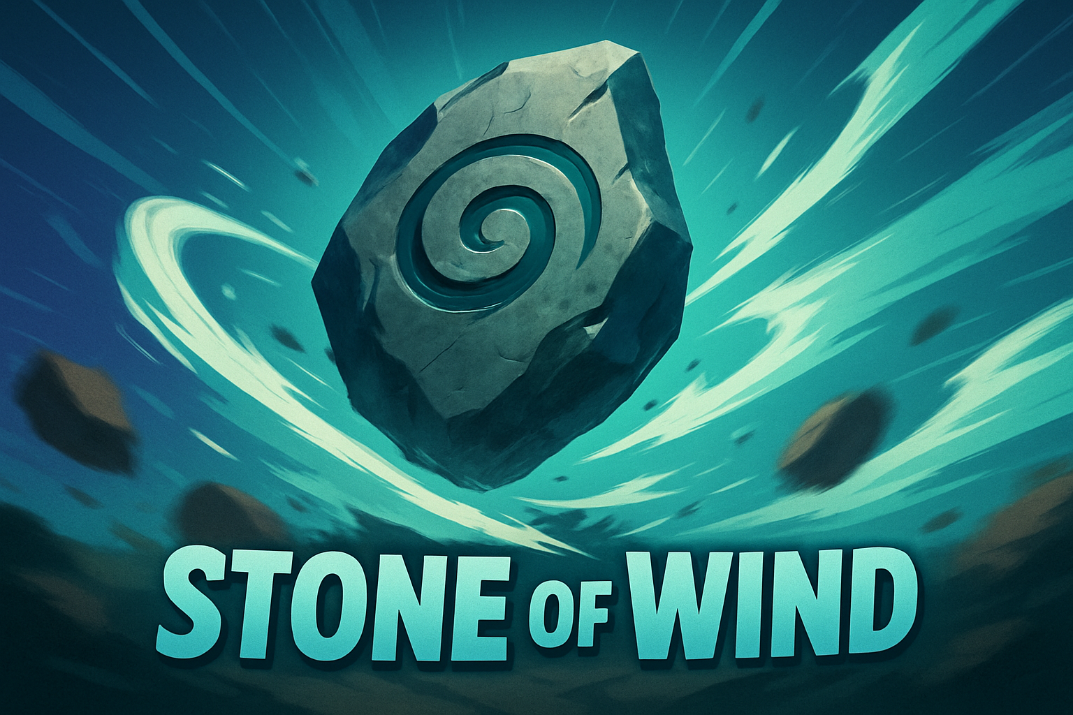 /Collection: /by davooda/Type: PNG/A striking 3D illustration of a stone with a swirling design, set against a smooth gradient background. The dynamic motion captures the essence of wind, with elements radiating from the center.