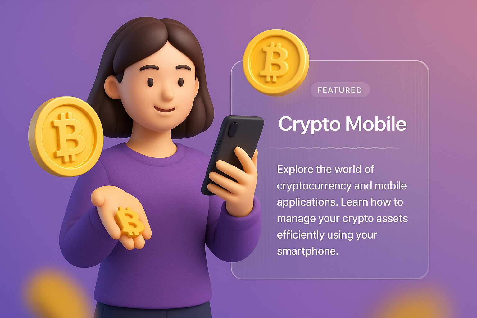 A 3D illustration featuring a woman holding a smartphone and cryptocurrency coins, emphasizing the integration of mobile technology in managing crypto assets.