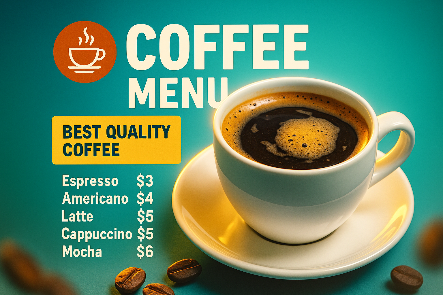 Dynamic Coffee Menu Display with Prices and Quality Highlights
