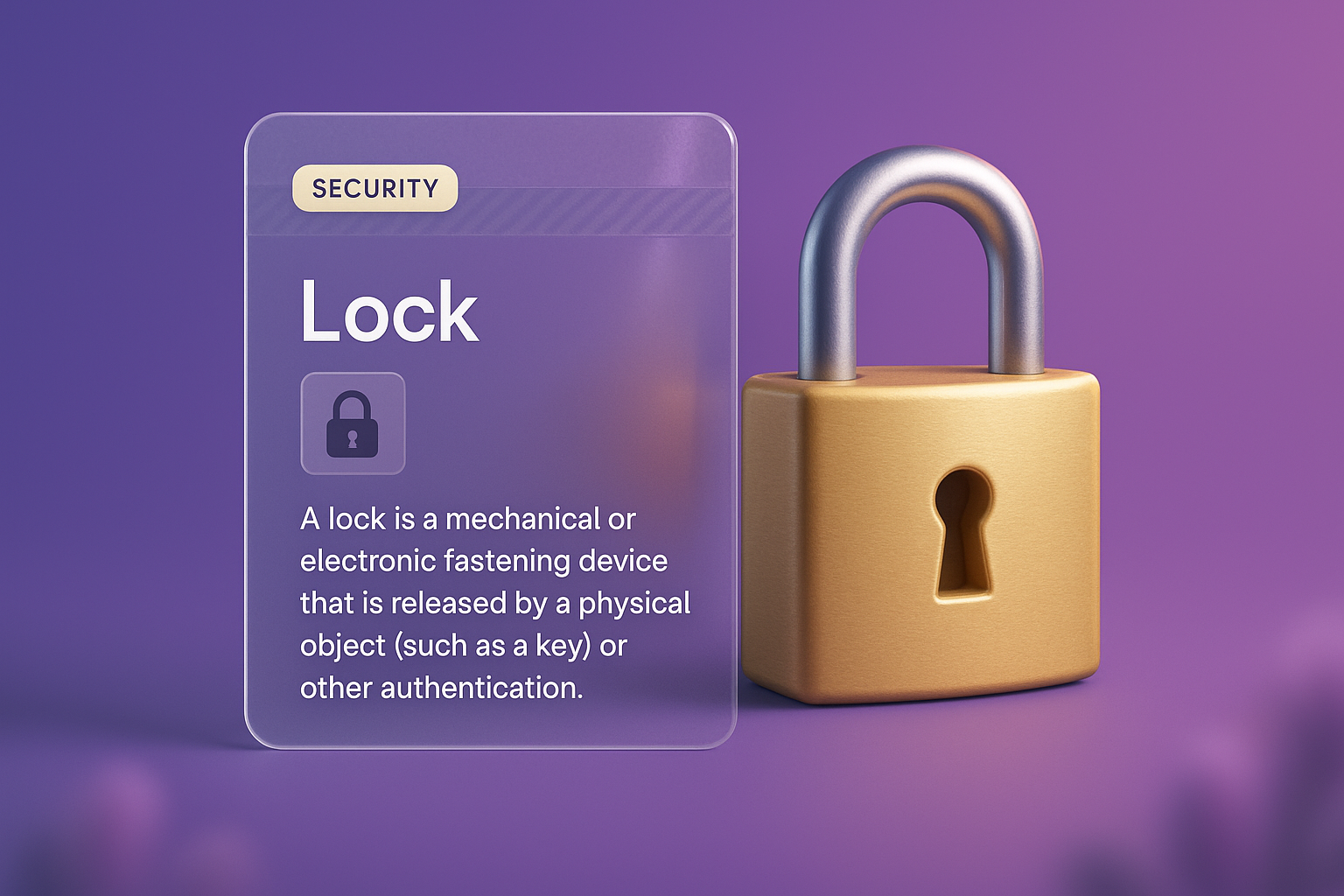 /Collection: /by davooda/Type: PNG/This 3D illustration features a lock with a sleek design, accompanied by a transparent label. The background transitions from a gradient to a solid color, enhancing the overall visual appeal.