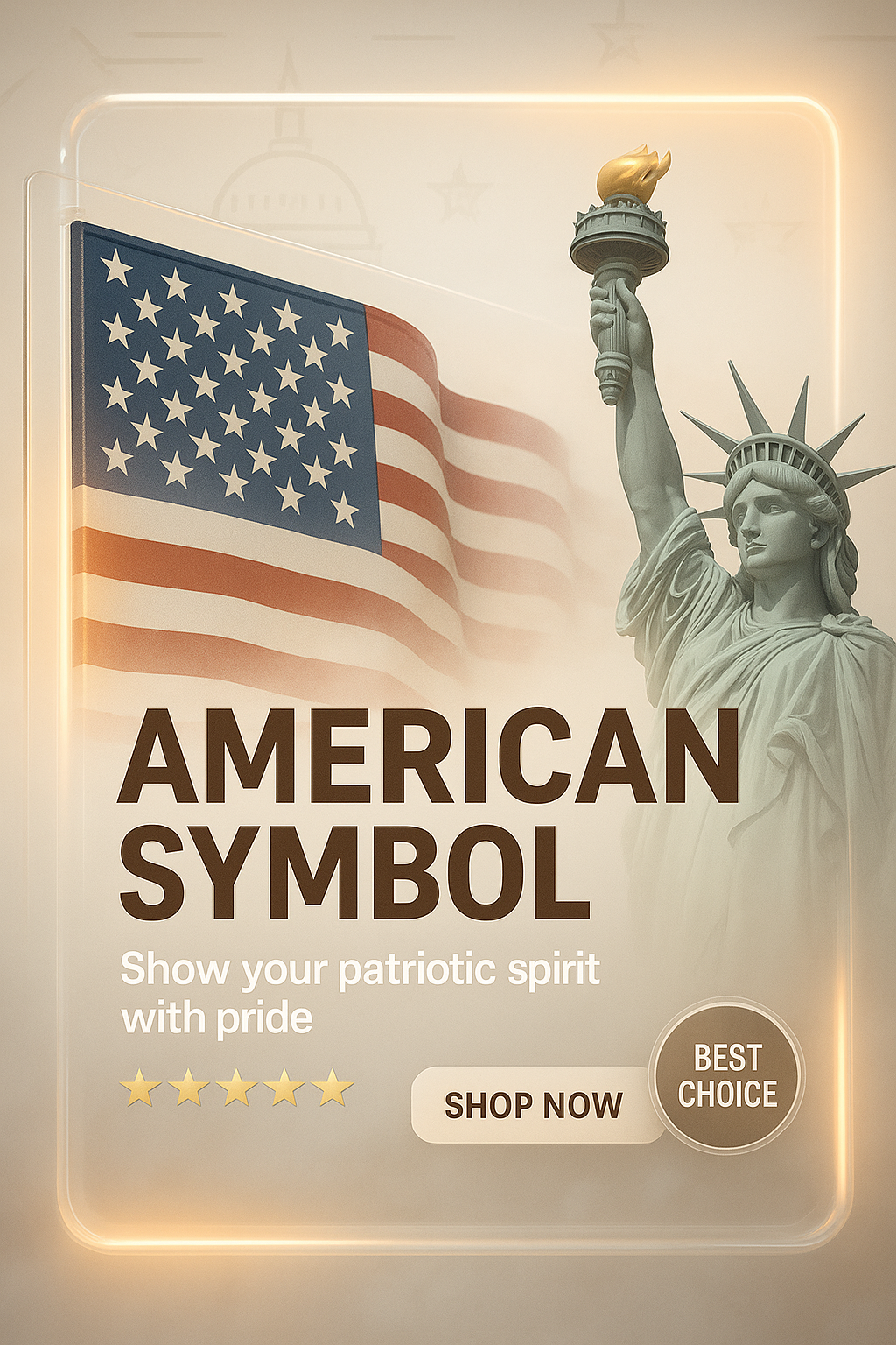 Vibrant promotional banner featuring the Statue of Liberty and American flag, designed to evoke patriotism. Ideal for e-commerce or event promotions.