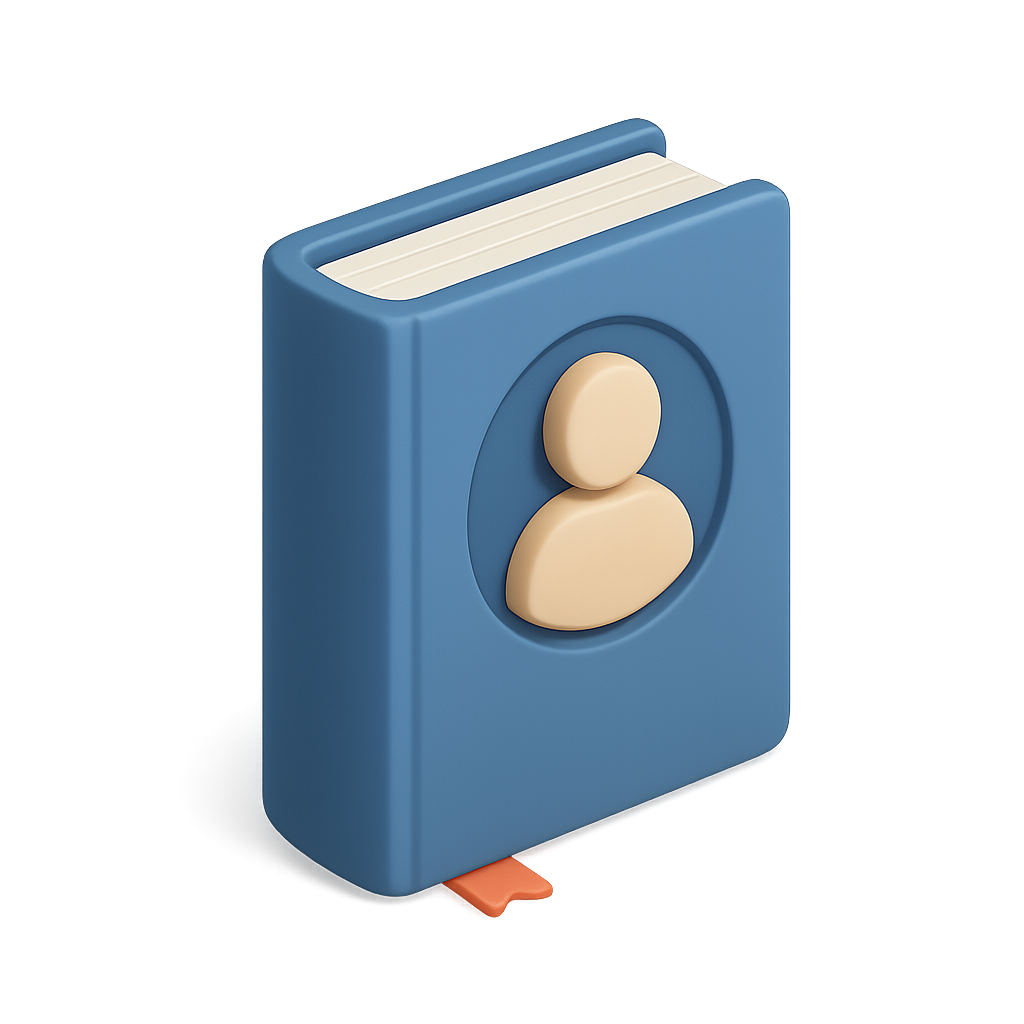 A 3D representation of an HR icon featuring a book-like structure with a user silhouette. The design showcases a blue cover and a peach-colored user figure, emphasizing a modern and professional look.