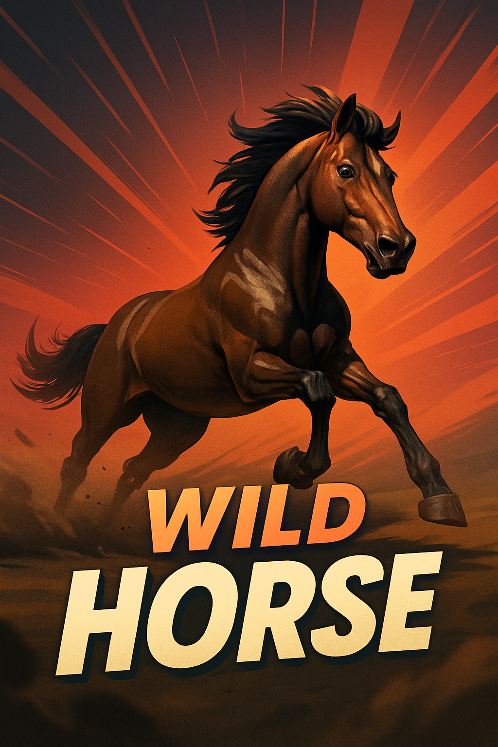 /Collection: /by davooda/Type: PNG/A powerful depiction of a wild horse in full gallop, showcasing muscular definition and dynamic movement against a vibrant gradient backdrop. The text 'WILD HORSE' is prominently displayed.