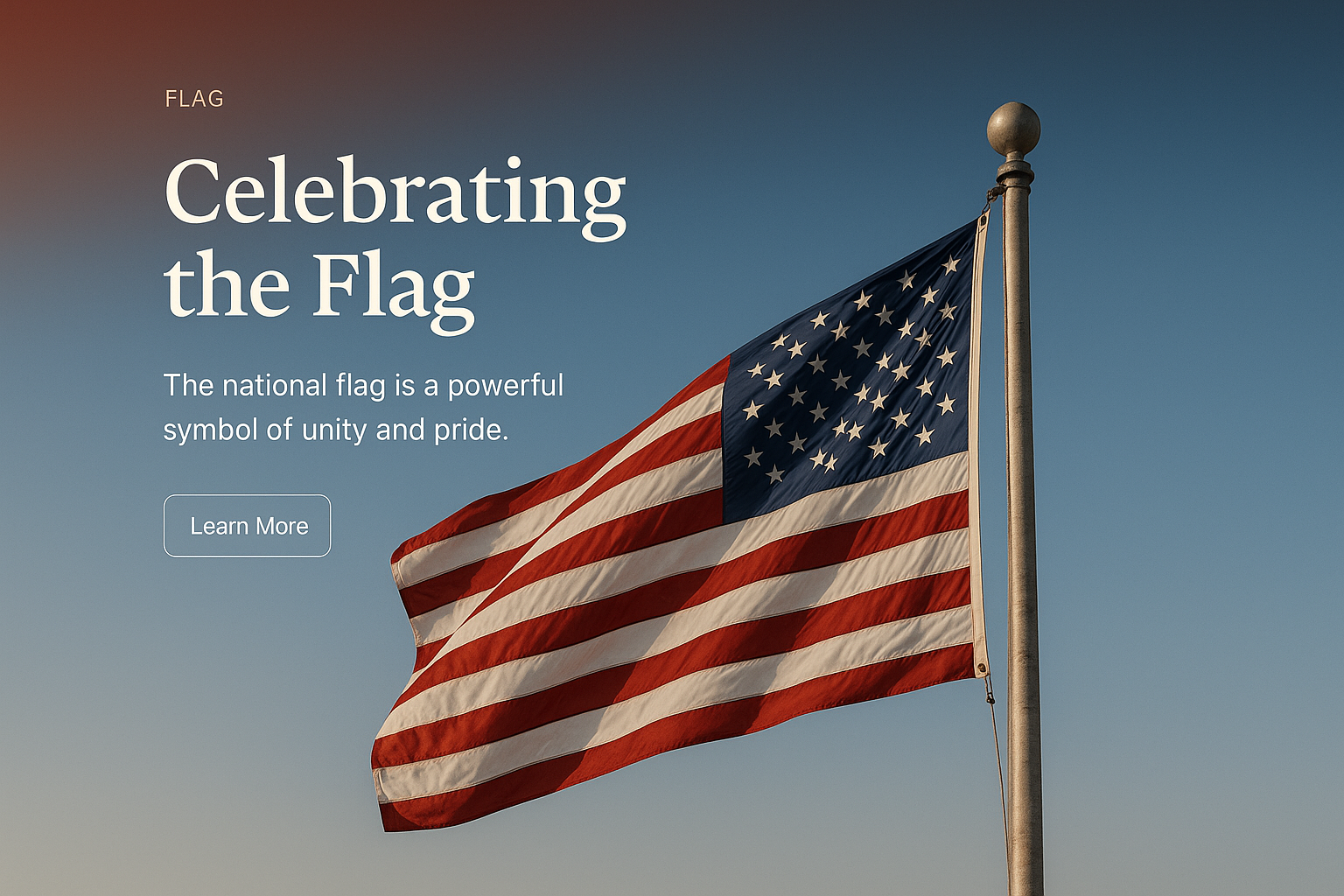 A visually appealing web page layout featuring an American flag, incorporating a gradient background and informative text elements.