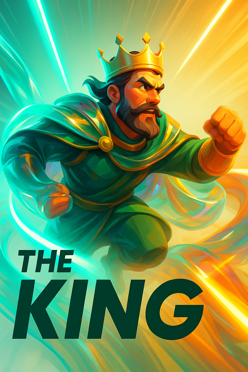 /Collection: /by davooda/Type: PNG/A vibrant depiction of a king in motion, surrounded by neon accents and dynamic light streaks. The scene features translucent materials and a bright atmosphere, evoking a sense of energy and power.