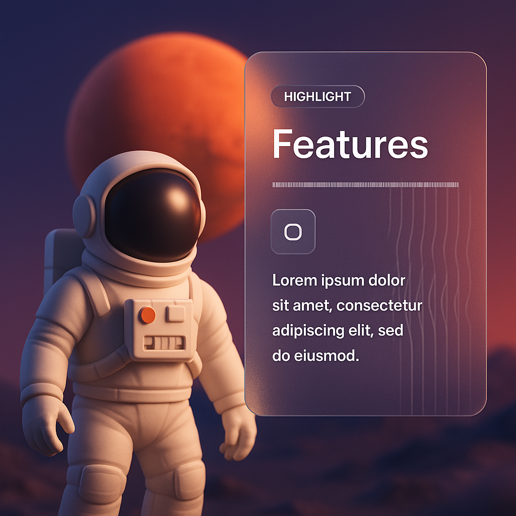 3D Astronaut Illustration in Space with Feature Descriptions