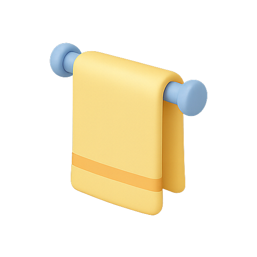 A minimalist, stylized representation of a yellow towel hanging on a blue holder, ideal for use in digital applications or home design projects.