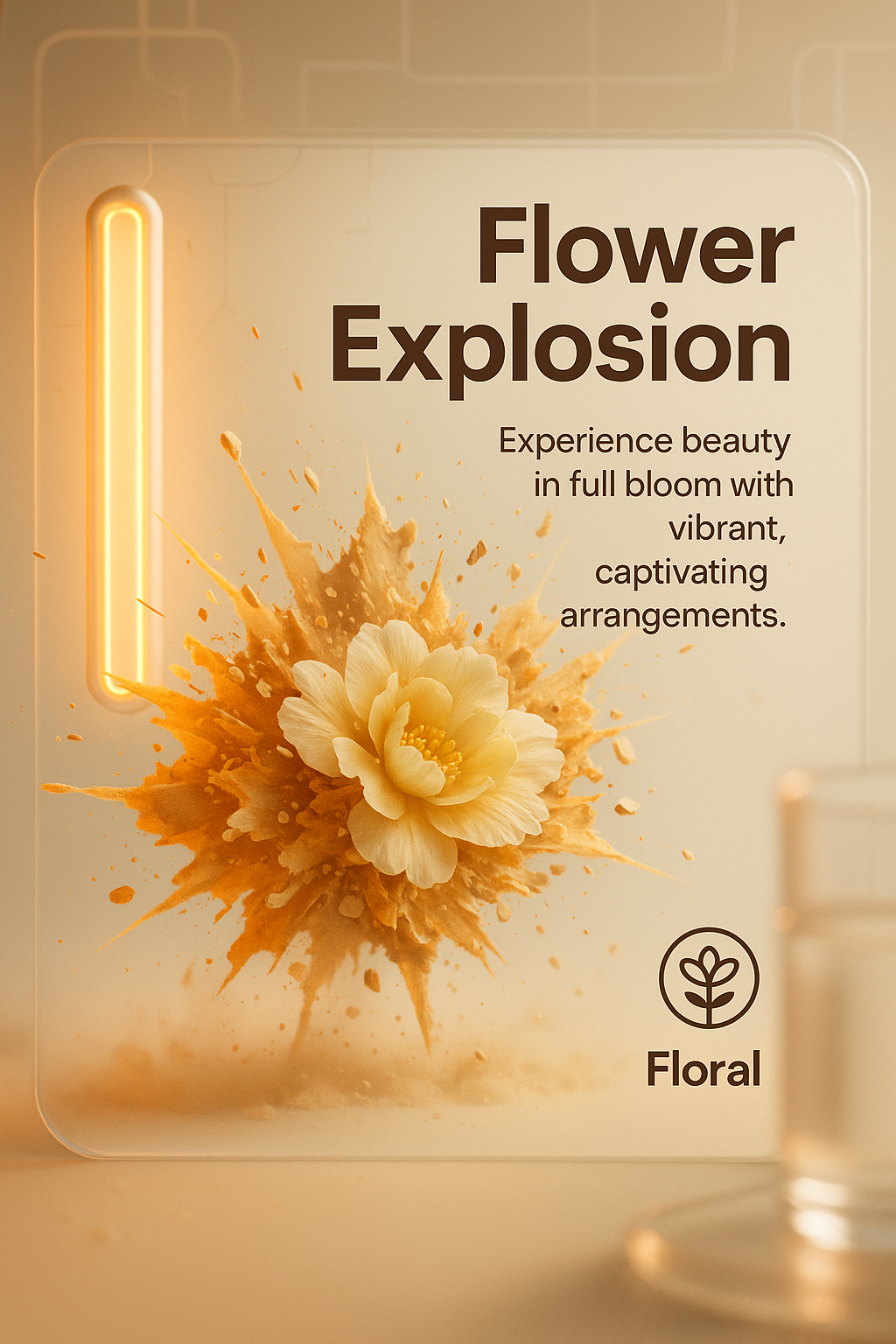 This promotional graphic showcases a floral theme with vibrant colors and dynamic design elements, ideal for advertising floral arrangements. It combines modern aesthetics with a clean layout.