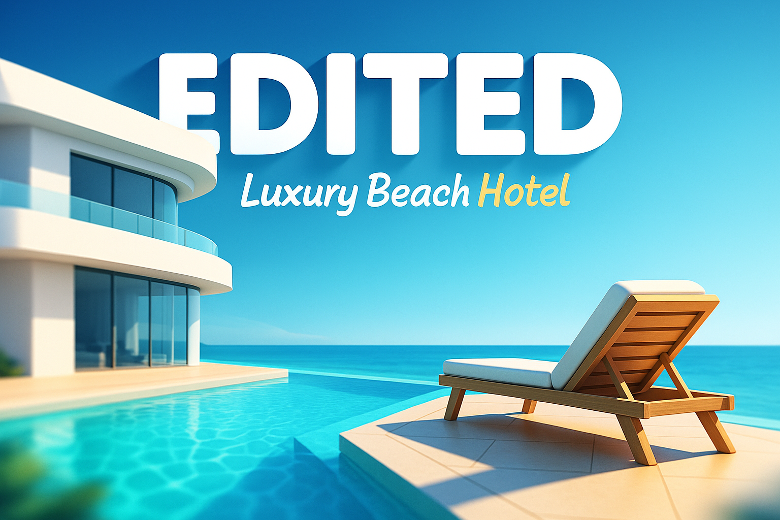 Luxury Beach Hotel Promotional Graphic with Ocean View