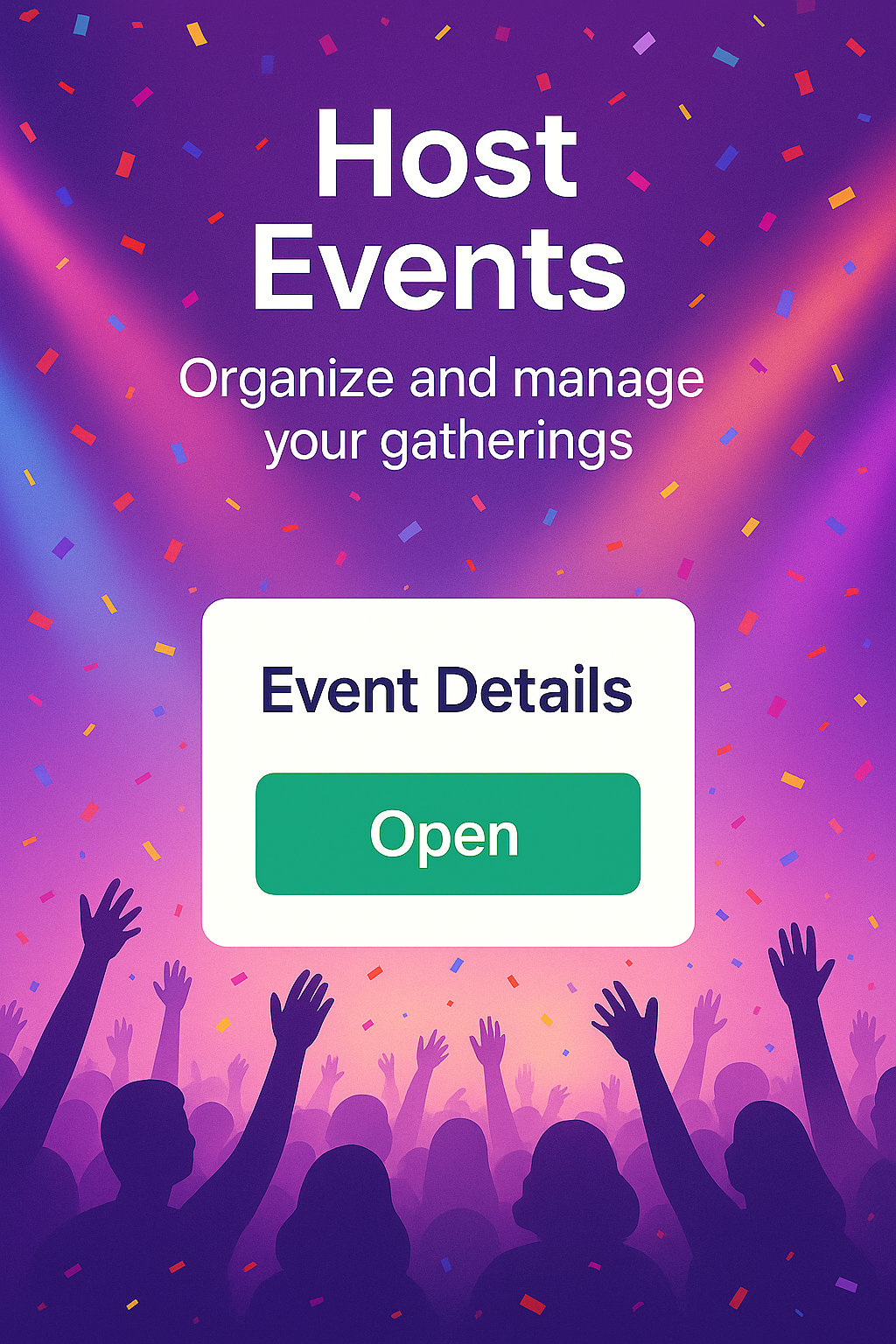 Vibrant graphic designed for event promotion, featuring a festive background with confetti and silhouettes of an audience, ideal for social media or website use.