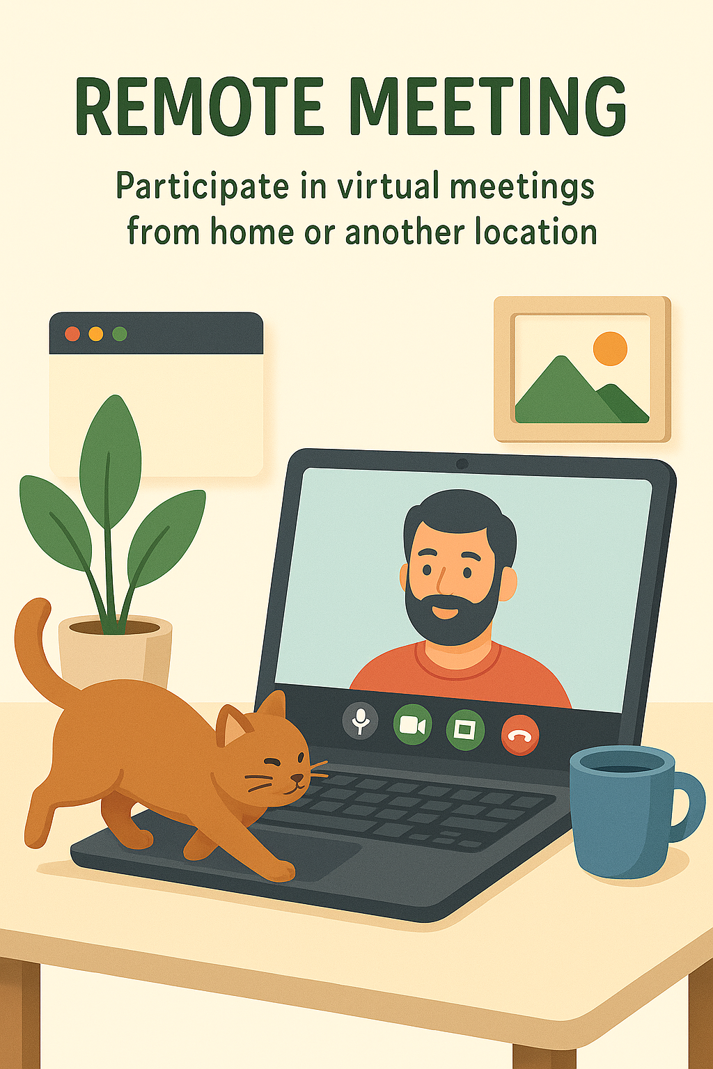 Illustrative Graphic of Remote Meeting Concept with Cat and Laptop