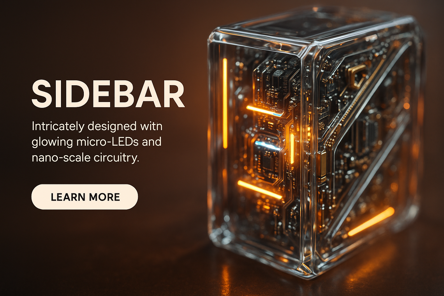 /Collection: /by davooda/Type: PNG/An extreme close-up of a high-tech sidebar crafted from glass-like polymers, showcasing glowing micro-LEDs, intricate circuitry, and a sophisticated design. Reflections and lighting create a mesmerizing effect.