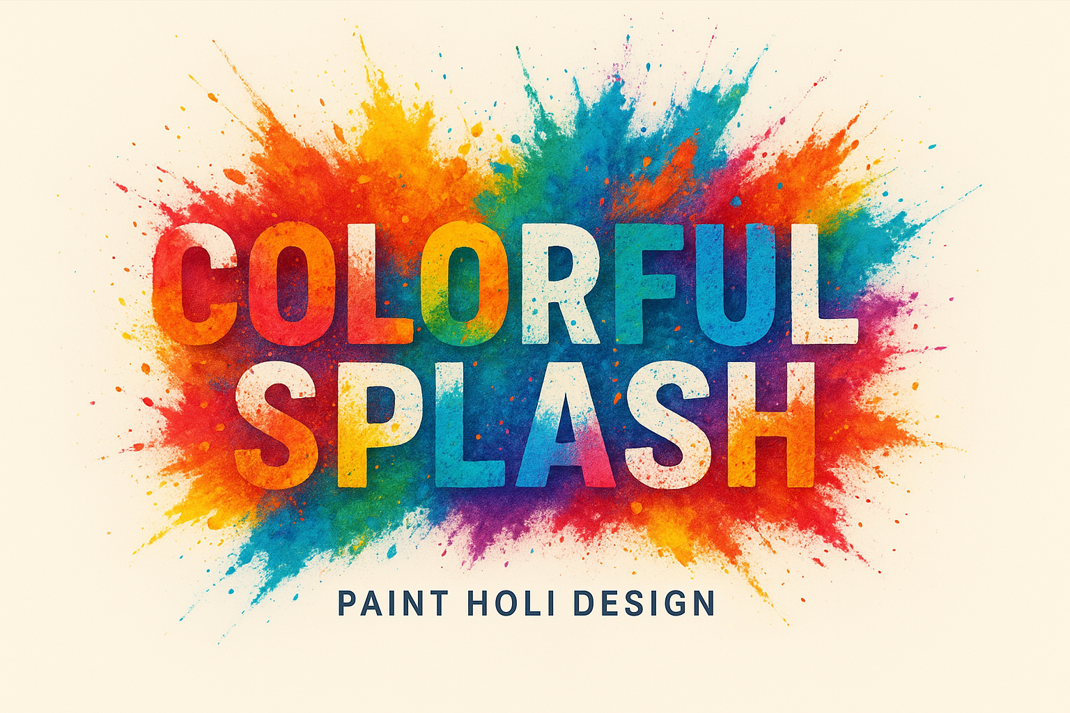 A dynamic graphic showcasing a colorful splash effect, perfect for promoting Holi celebrations. The bright hues and playful design create an energetic atmosphere suitable for event promotions.