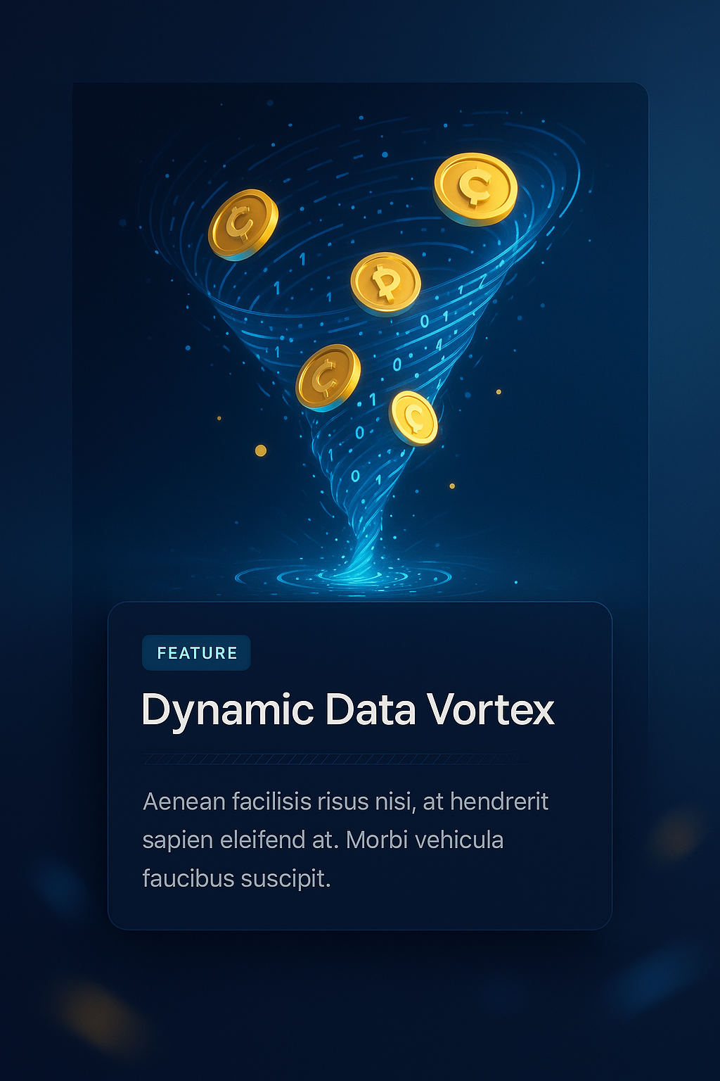 /Collection: /by davooda/Type: PNG/A visually striking 3D illustration of a tornado made of data, featuring glowing coins spiraling within. The background transitions smoothly, enhancing the dynamic effect.