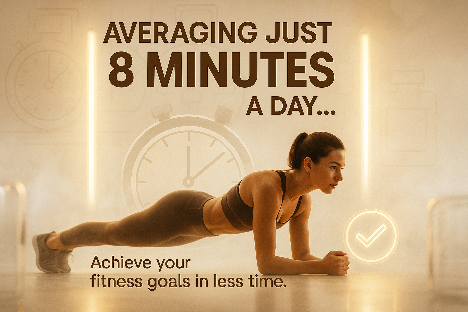 This image promotes quick fitness routines, featuring a woman in a plank position with motivational text. Ideal for social media or fitness campaigns.