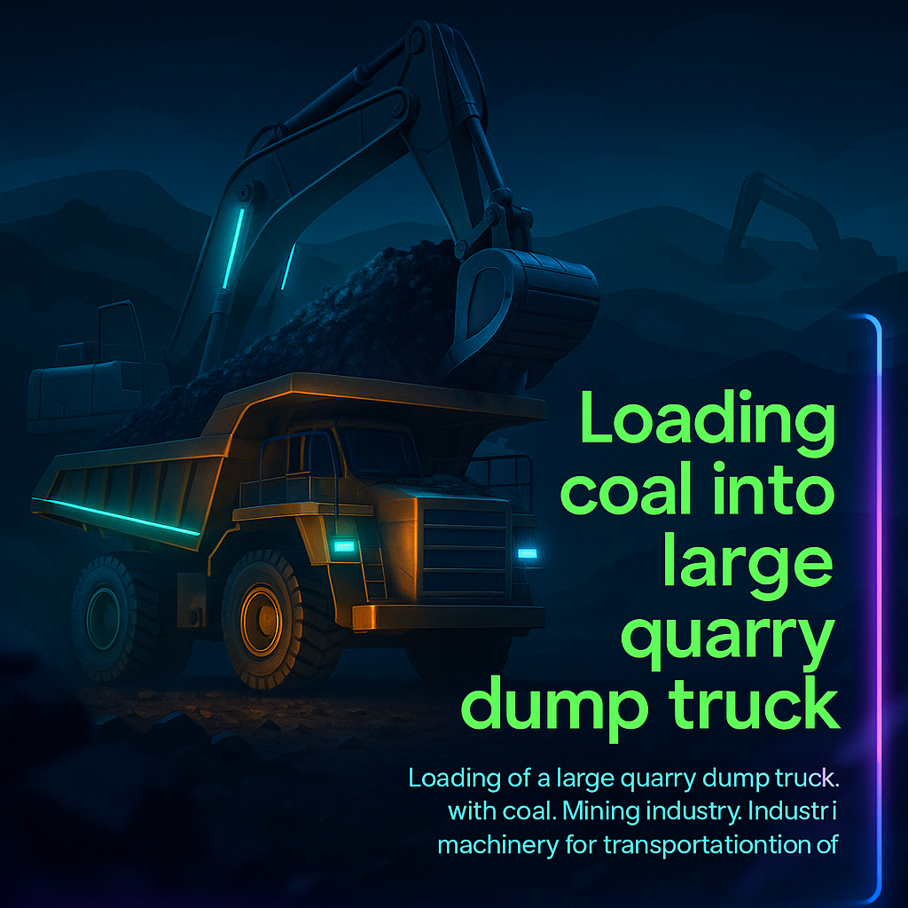 /Collection: /by davooda/Type: PNG/A vibrant digital illustration showcasing a large quarry dump truck being loaded with coal. The artwork emphasizes the mining industry with a modern and stylized design, suitable for industry-related publications or marketing.