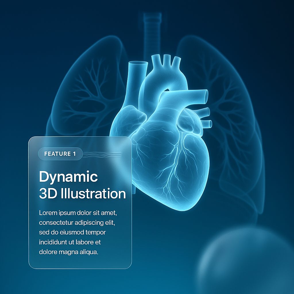 3D Illustration of Human Heart and Lungs in X-Ray View