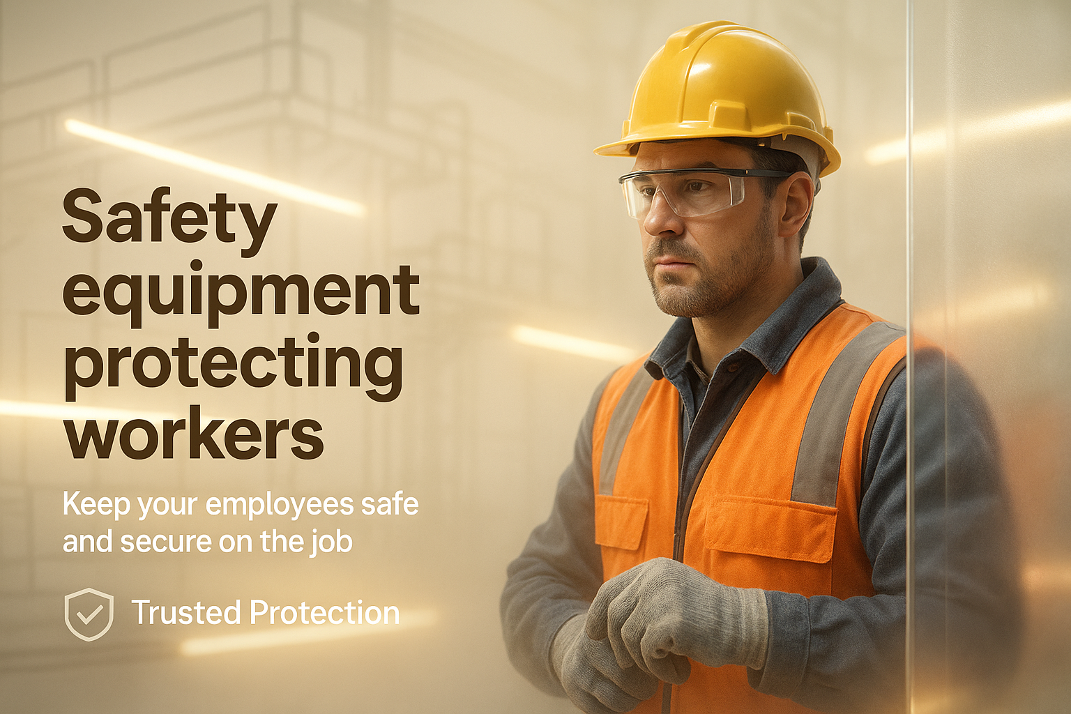 /Collection: /by davooda/Type: PNG/Professional graphic highlighting safety equipment for workers, featuring a construction worker in protective gear. Ideal for workplace safety campaigns and training materials.