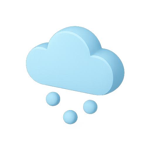 /Collection: /by davooda/Type: PNG/Stylized 3D cloud icon in soft blue with raindrops, suitable for weather-related applications or graphics. The design is minimalistic and modern, appealing to digital and app designers.