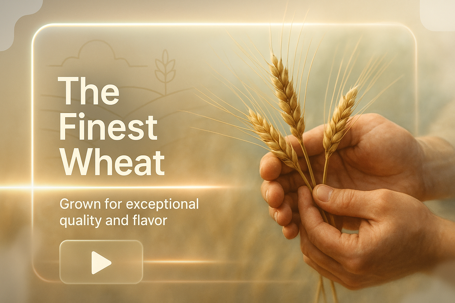 /Collection: /by davooda/Type: PNG/A promotional graphic showcasing hands holding wheat, emphasizing quality and flavor. The soft lighting and modern design elements are suitable for agricultural marketing.