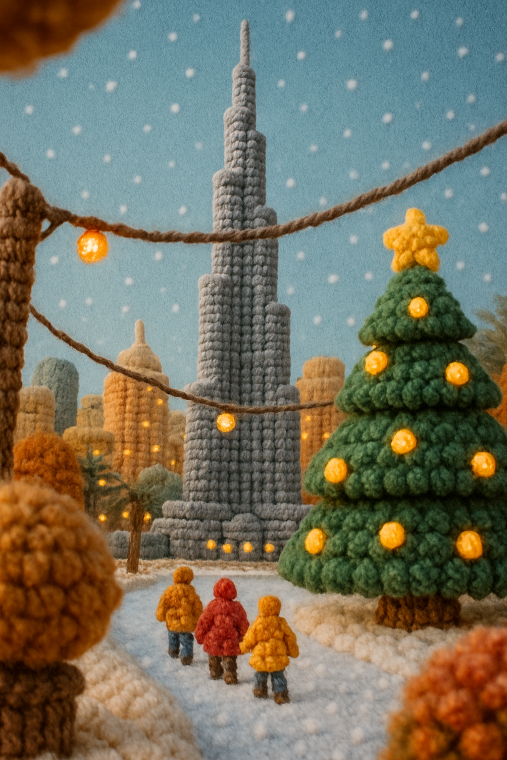 Knitted Dubai in Snow: A Cozy Holiday Scene