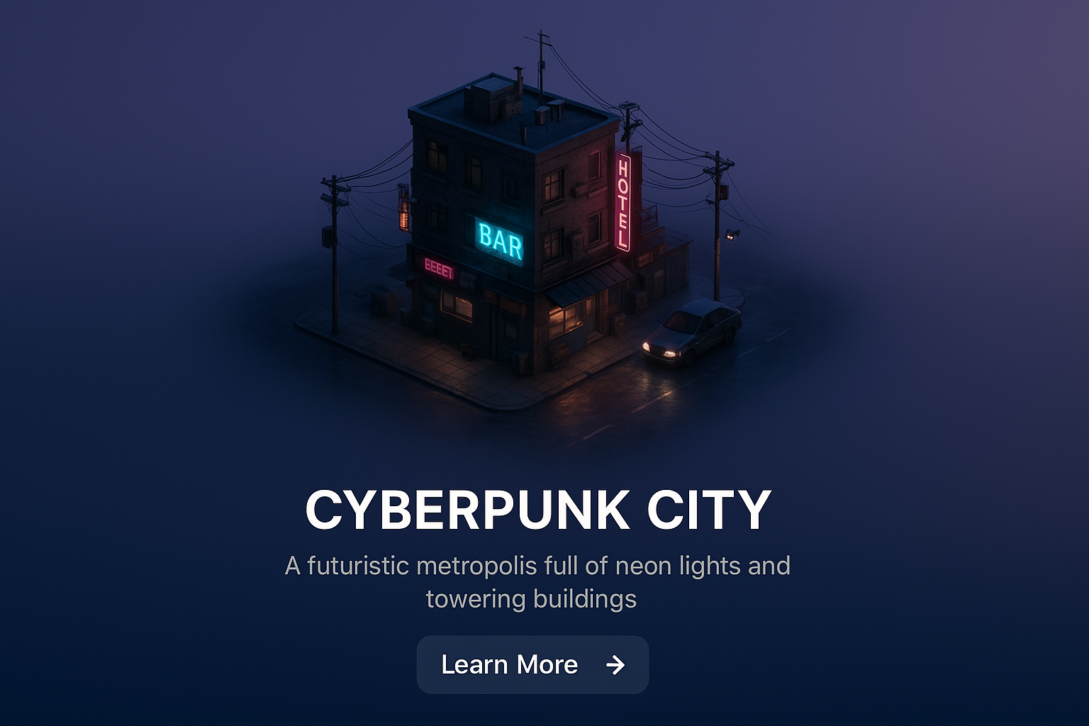 /Collection: /by davooda/Type: PNG/An immersive 3D illustration depicting a cyberpunk cityscape at night. The scene features a small building with vibrant neon signs, creating a captivating urban atmosphere.
