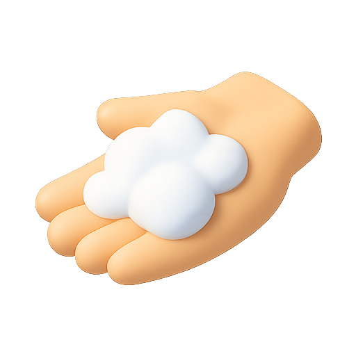 A simplistic and playful emoji depicting a hand holding a fluffy soap foam, ideal for digital communication about cleanliness or hygiene.