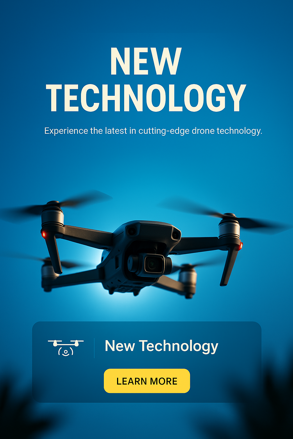 /Collection: /by davooda/Type: PNG/This is a promotional graphic showcasing a drone, highlighting new technology. The modern design and blue background cater to tech enthusiasts and potential buyers.