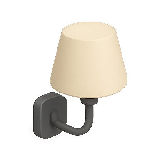 Minimalist wall sconce featuring a soft beige lampshade and sleek black mounting. Ideal for contemporary interior design, enhancing ambiance in living spaces.