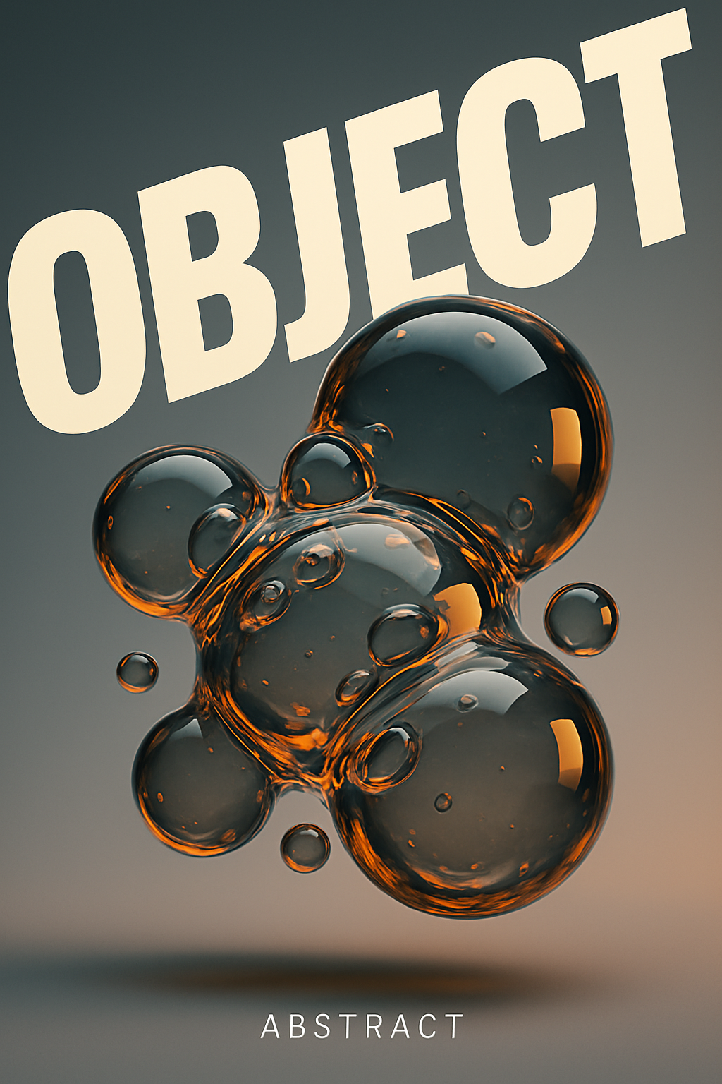 /Collection: /by davooda/Type: PNG/An abstract 3D render showcasing floating liquid bubbles colliding against a grey gradient background. The bold typography adds to the dynamic and modern aesthetic.