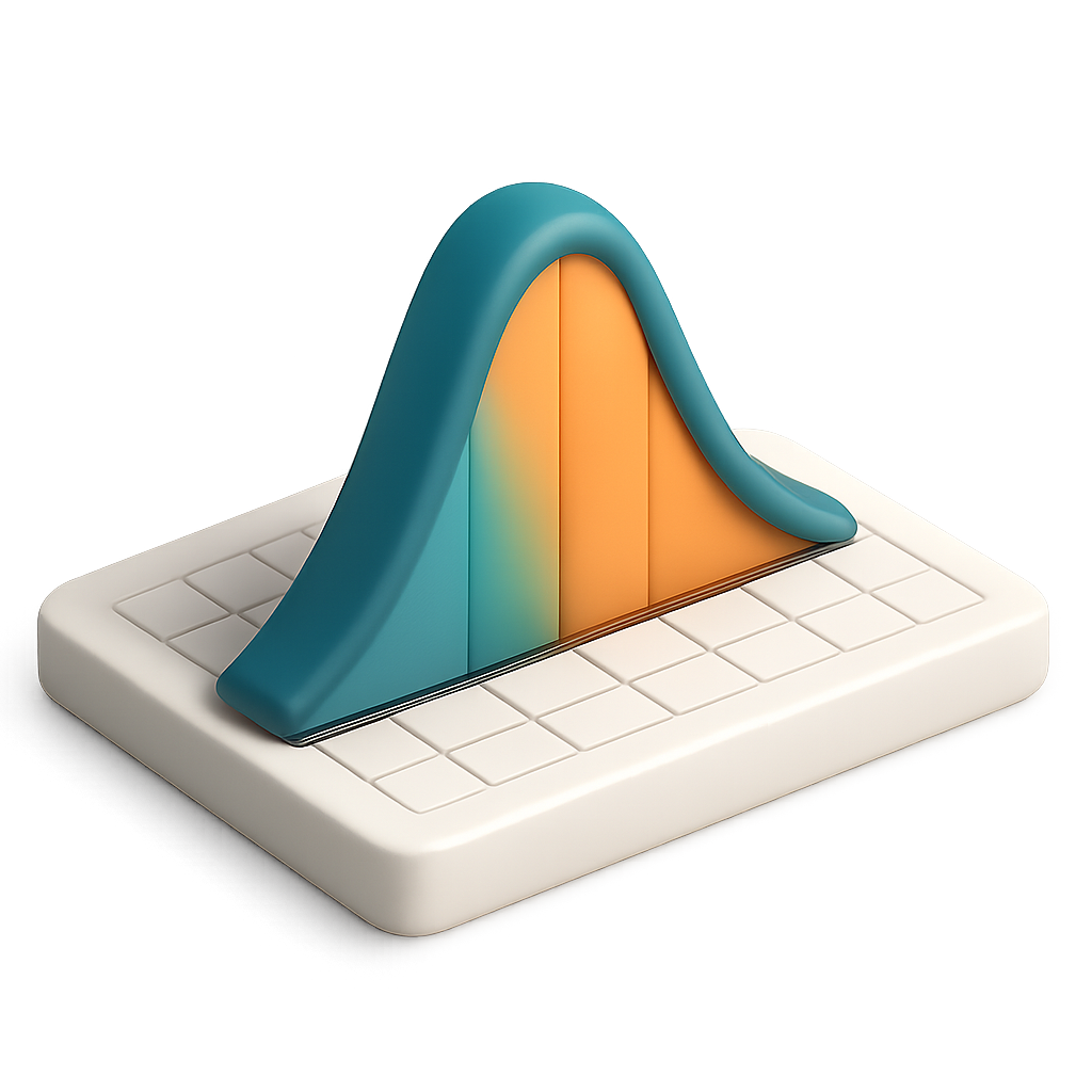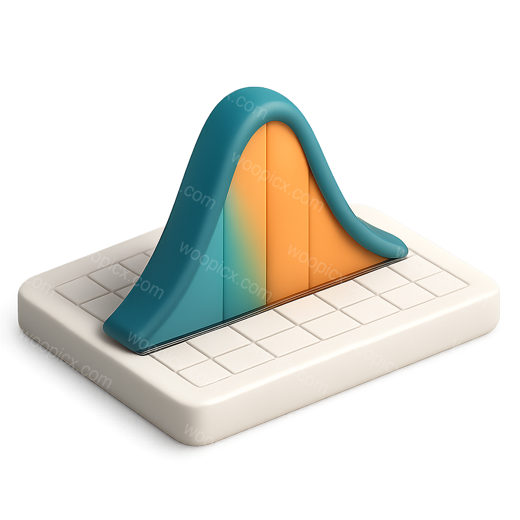 A vibrant 3D bell curve icon presented in a three-quarter isometric view, featuring smooth gradients and a clean, transparent background for a modern aesthetic.