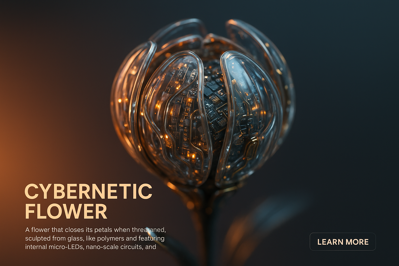 Hyperrealistic Cybernetic Flower with Glowing Inner Mechanics