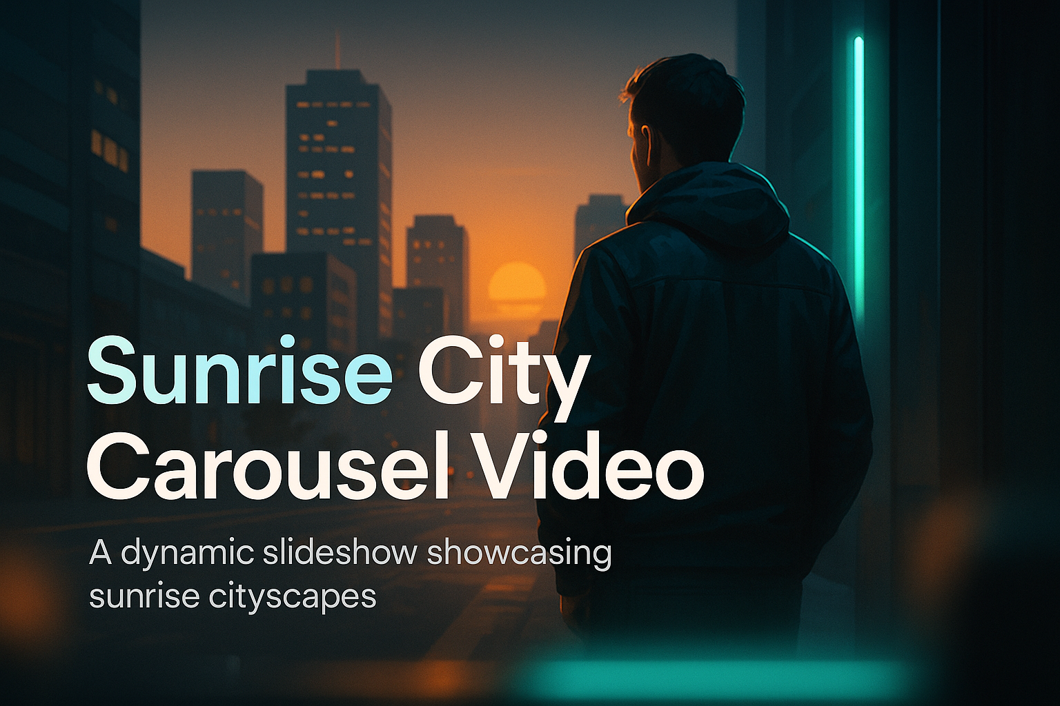 A visually engaging carousel video promotional graphic showcasing sunrise cityscapes, perfect for social media or video marketing campaigns.