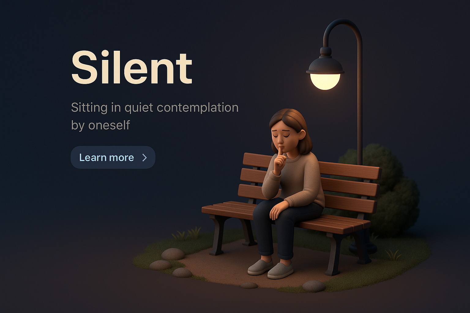/Collection: /by davooda/Type: PNG/A serene 3D illustration of a person sitting silently on a park bench under a lamp. The environment features a dark gradient background, enhancing the peaceful mood.