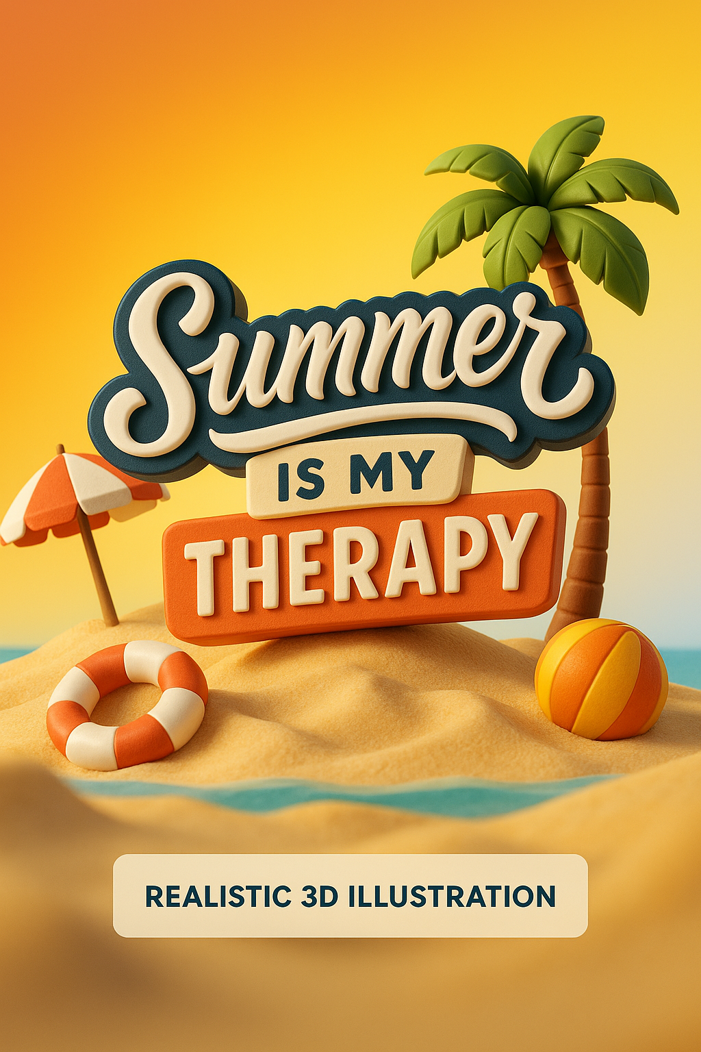3D Summer Icon with Beach Elements and Clear Text Layout