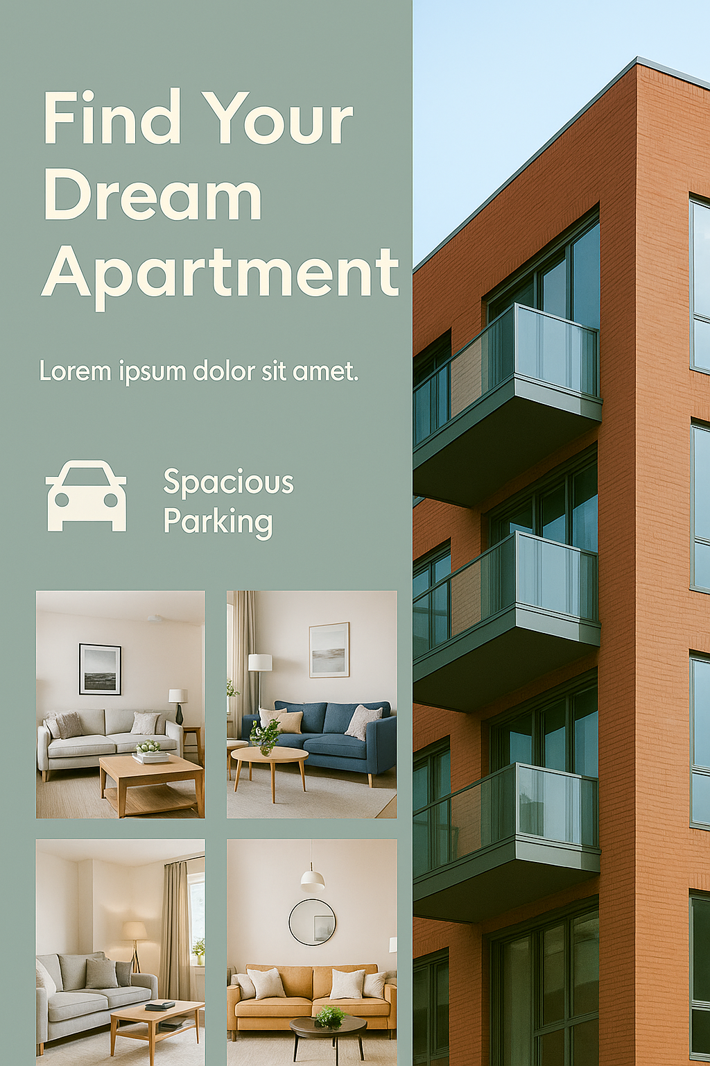 Real Estate Promotional Graphic Featuring Modern Apartments