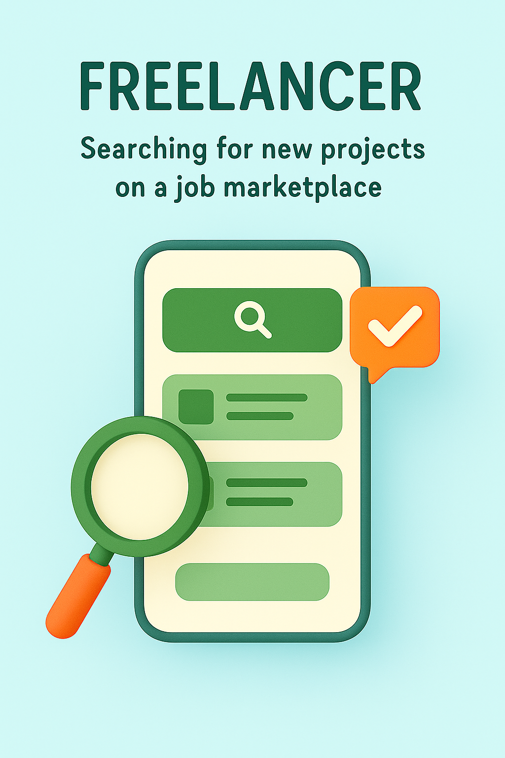 Illustration of Freelancer Searching for Jobs on Mobile App