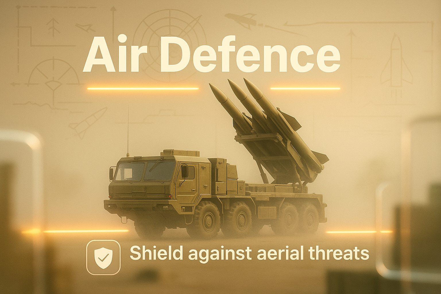 /Collection: /by davooda/Type: PNG/Stylized graphic depicting a military air defence vehicle with missiles, set against a soft, smoky background. Ideal for defense-related presentations or promotional materials.