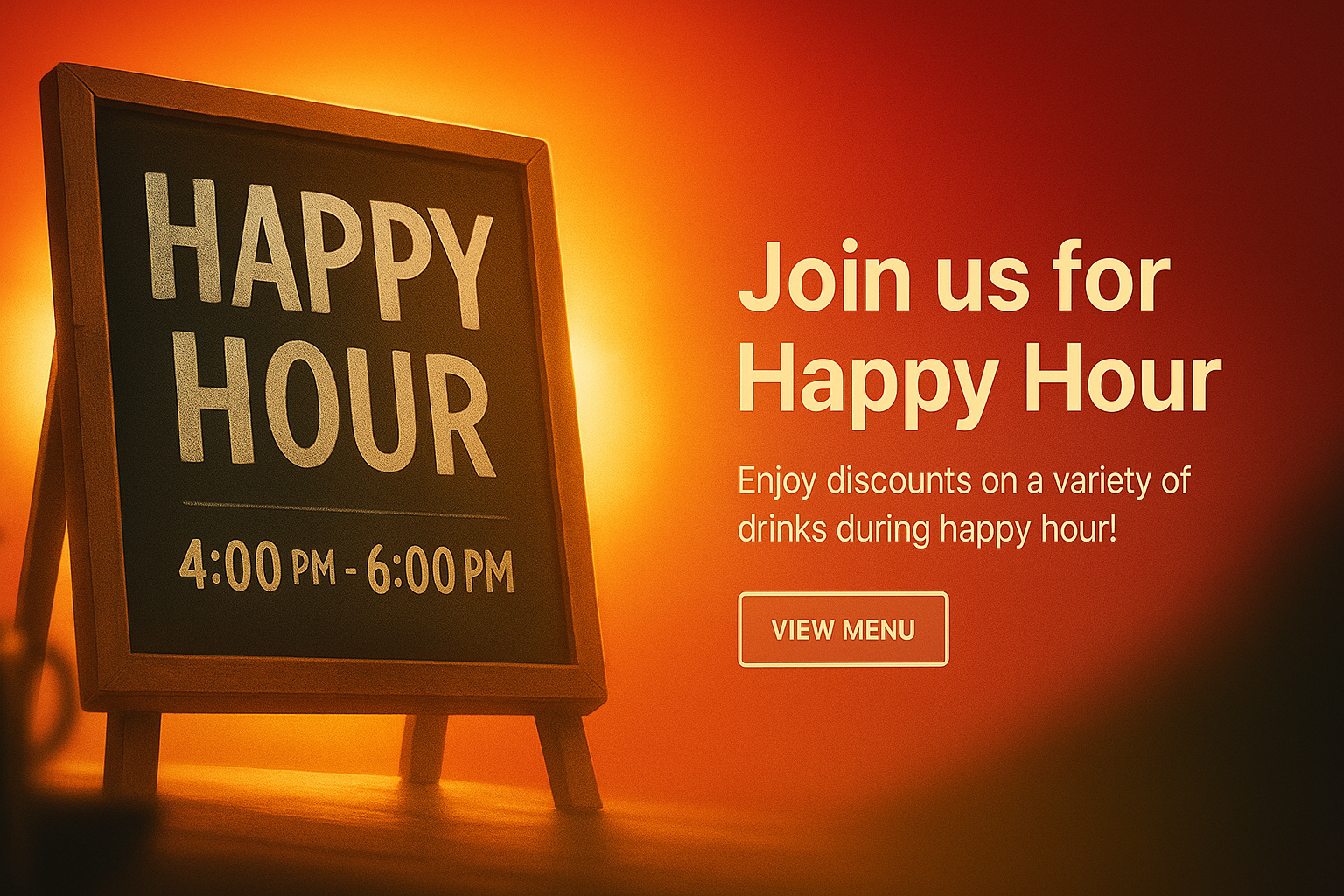 Vibrant Happy Hour Promotional Graphic Featuring Refreshing Cocktails