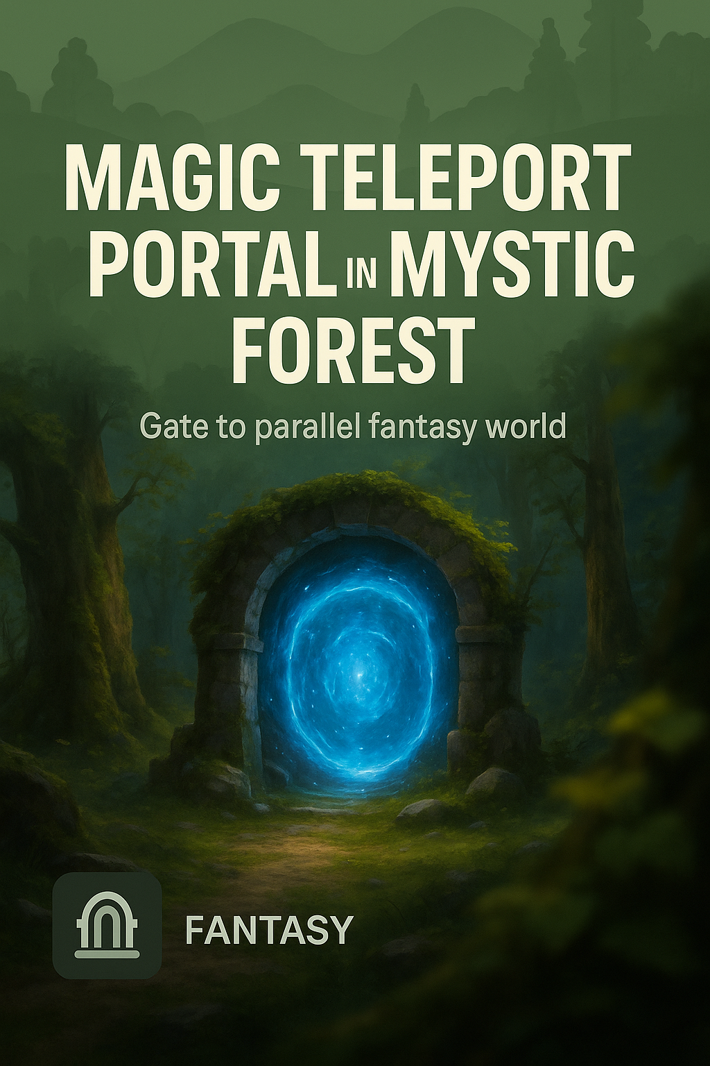 /Collection: , /by davooda/Type: PNG/A captivating fantasy illustration depicting a magical teleport portal set in a lush, mystical forest. Ideal for fantasy-themed projects and storytelling.