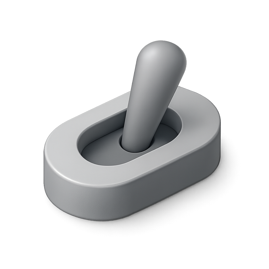 A sleek 3D icon of a toggle switch presented in an isometric view. The design features a rounded base with a prominent switch lever, showcasing a modern and volumetric style.