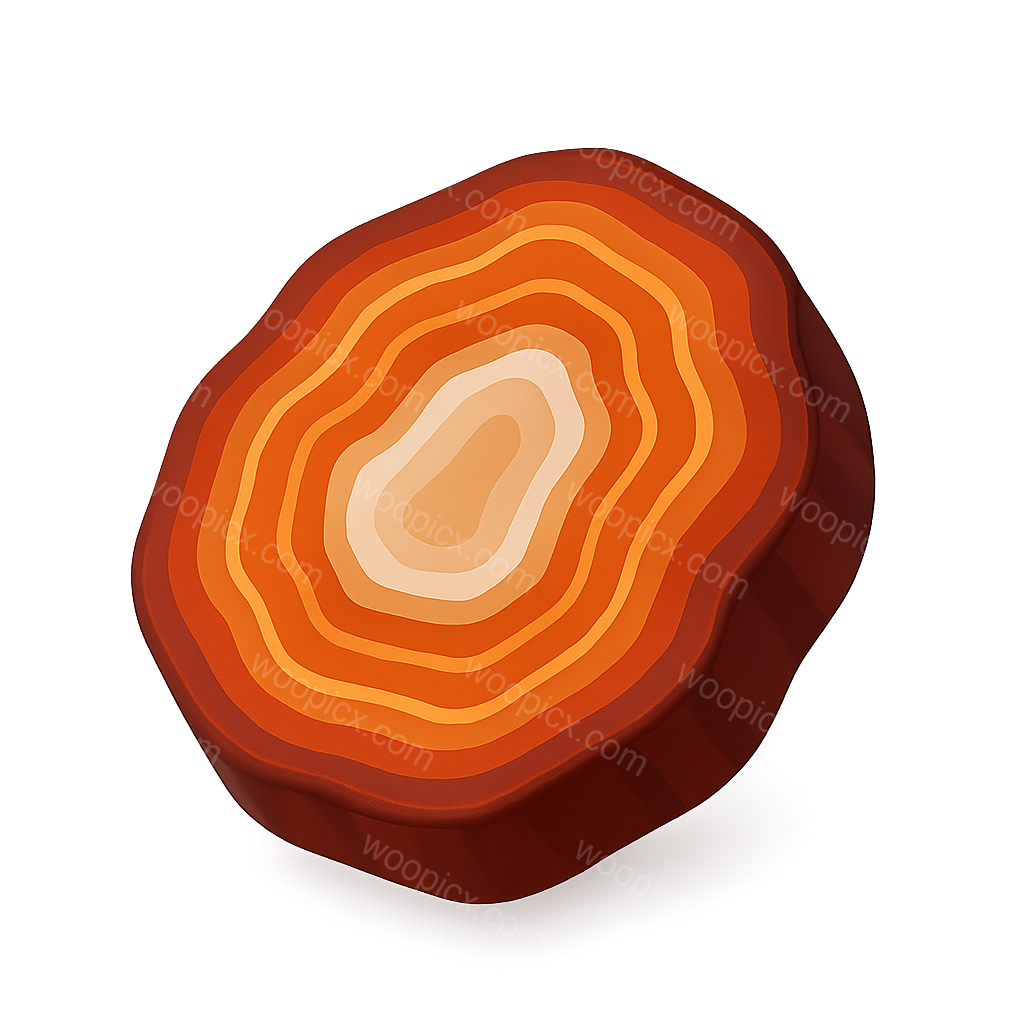 This image showcases a stylized 3D representation of an agate stone, featuring vibrant, concentric layers in warm tones. The isometric view highlights its volumetric design.