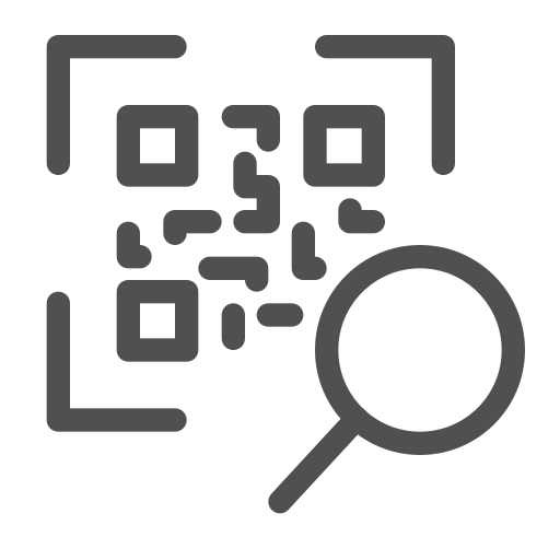 outline simple icon: barcode, code, digital, magnifying glass, qr code