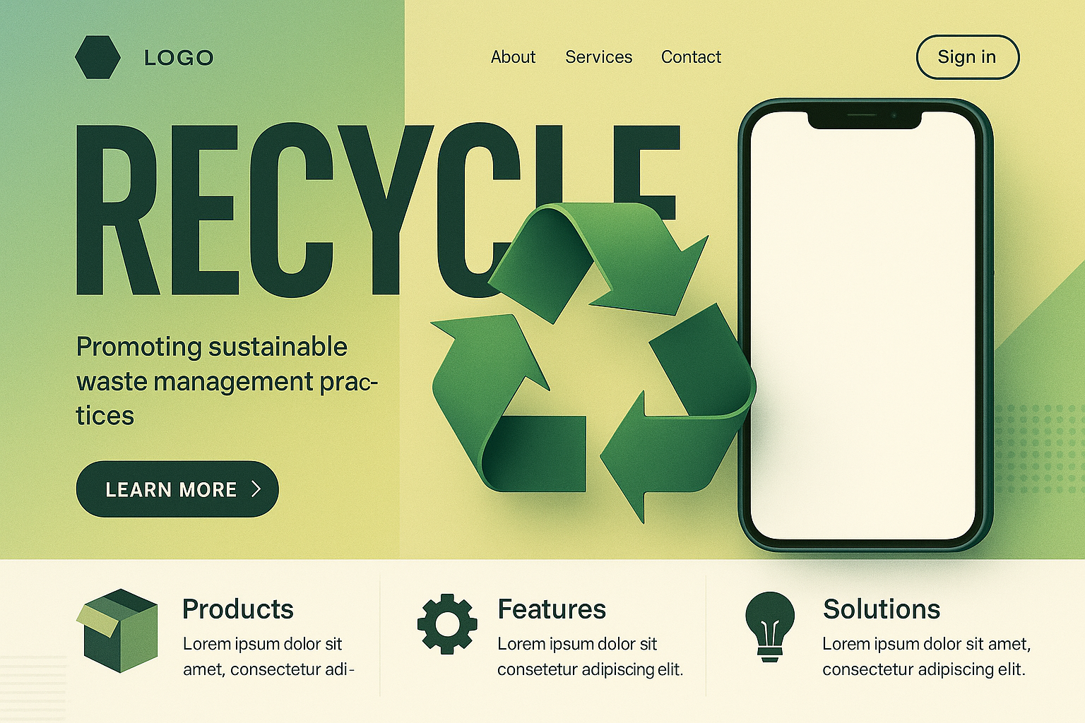 Modern Landing Page Design Featuring Recycling Symbol and iPhone